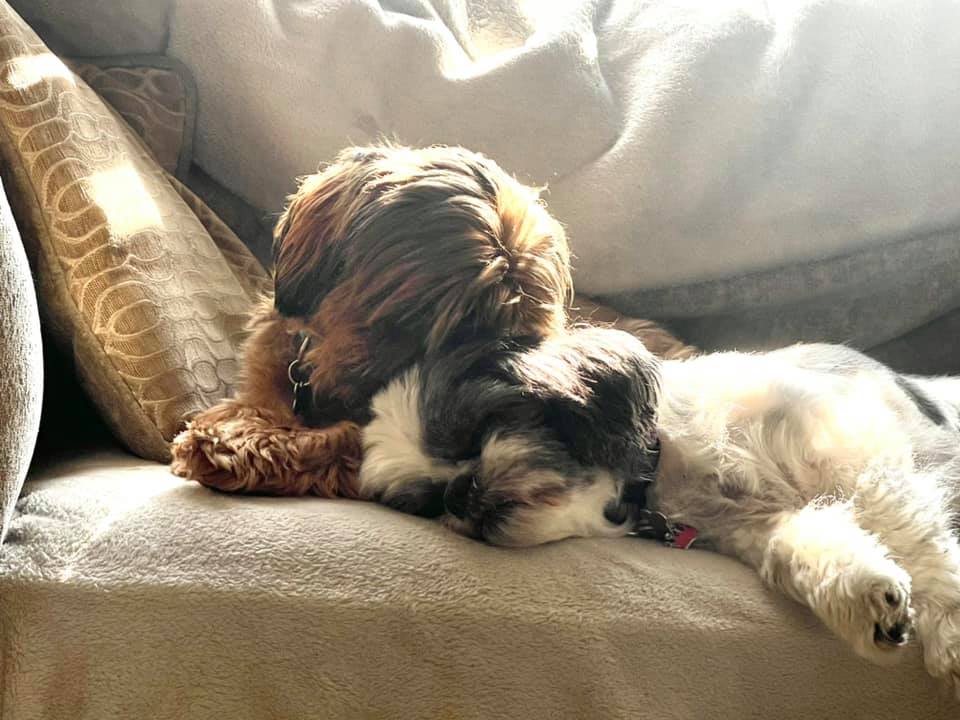 Daisy filled the silence in her own way—not by replacing Sunny, but by being herself. She brought movement back into the house, laughter back into our routines. Teddy protects her on walks, which never fails to make me smile: a tiny Shih Tzu bravely guarding a much larger Boxer. They aren’t best friends, but they are family, and that’s enough.